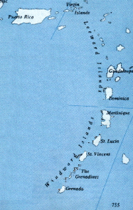 Bending southward from this large island are the Leeward and Windward islands of the Caribbean. After leaving the gateway of San Juan these islands stand open before the traveler with their tall, verdant mountains, extinct volcanoes and whitewashed port towns. Red roofed homes speckle the hillsides, and their shadows are translucent in the clear water of the bays. Winding roads cut through luscious jungles. Surrounding the islands are a halo of white beaches and turquoise waters. Several yachts lie idle, anchored in protective blue lagoons. L1011s constantly bring in another load of tourists